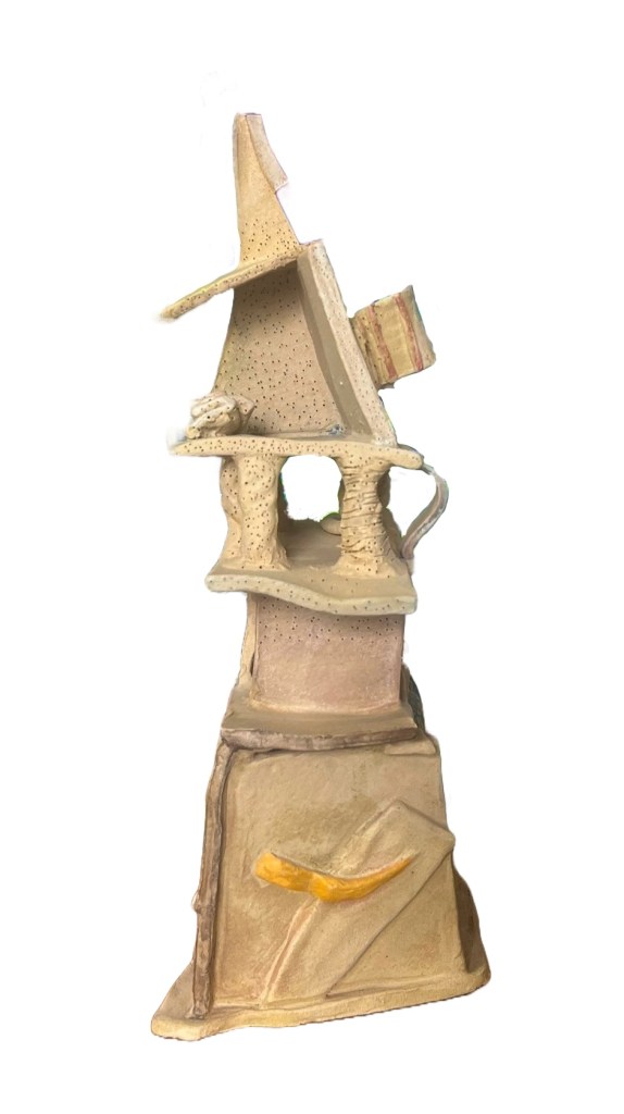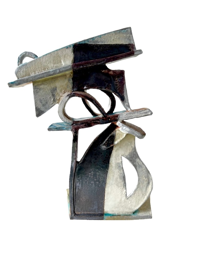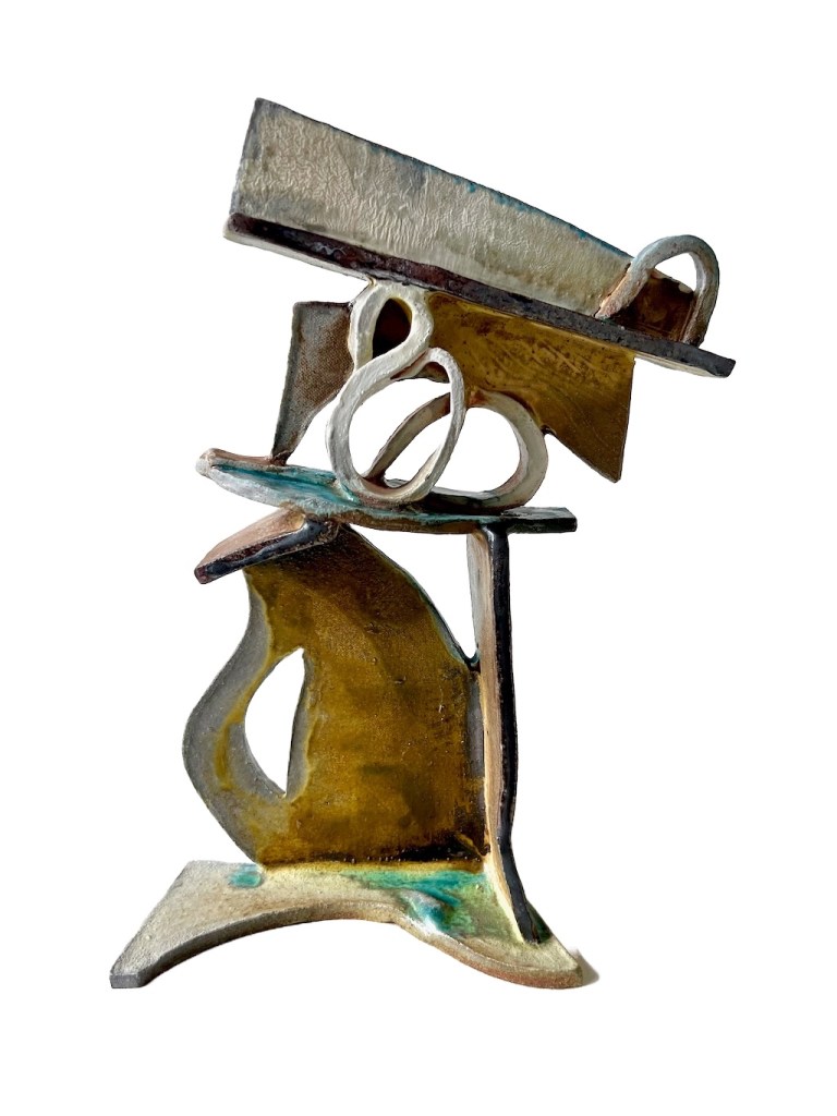 teeter. ceramic with glaze and underglaze. 18″ x 9″ x 6″. 2024
