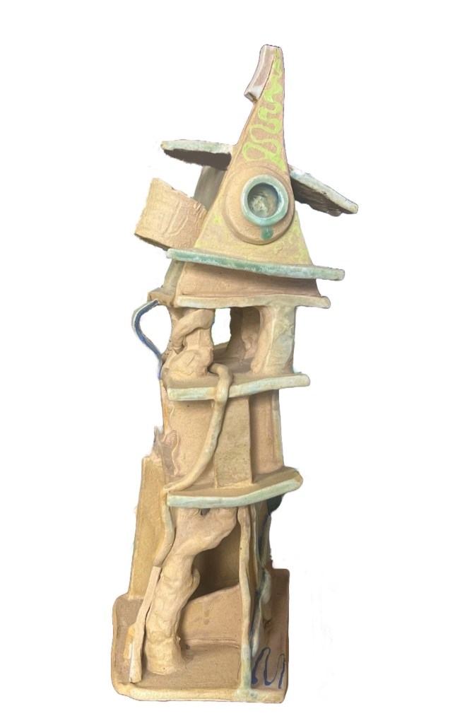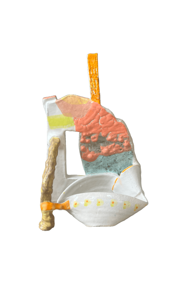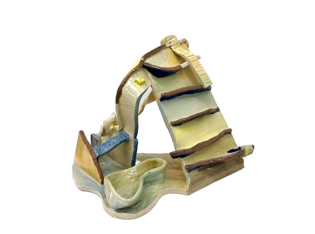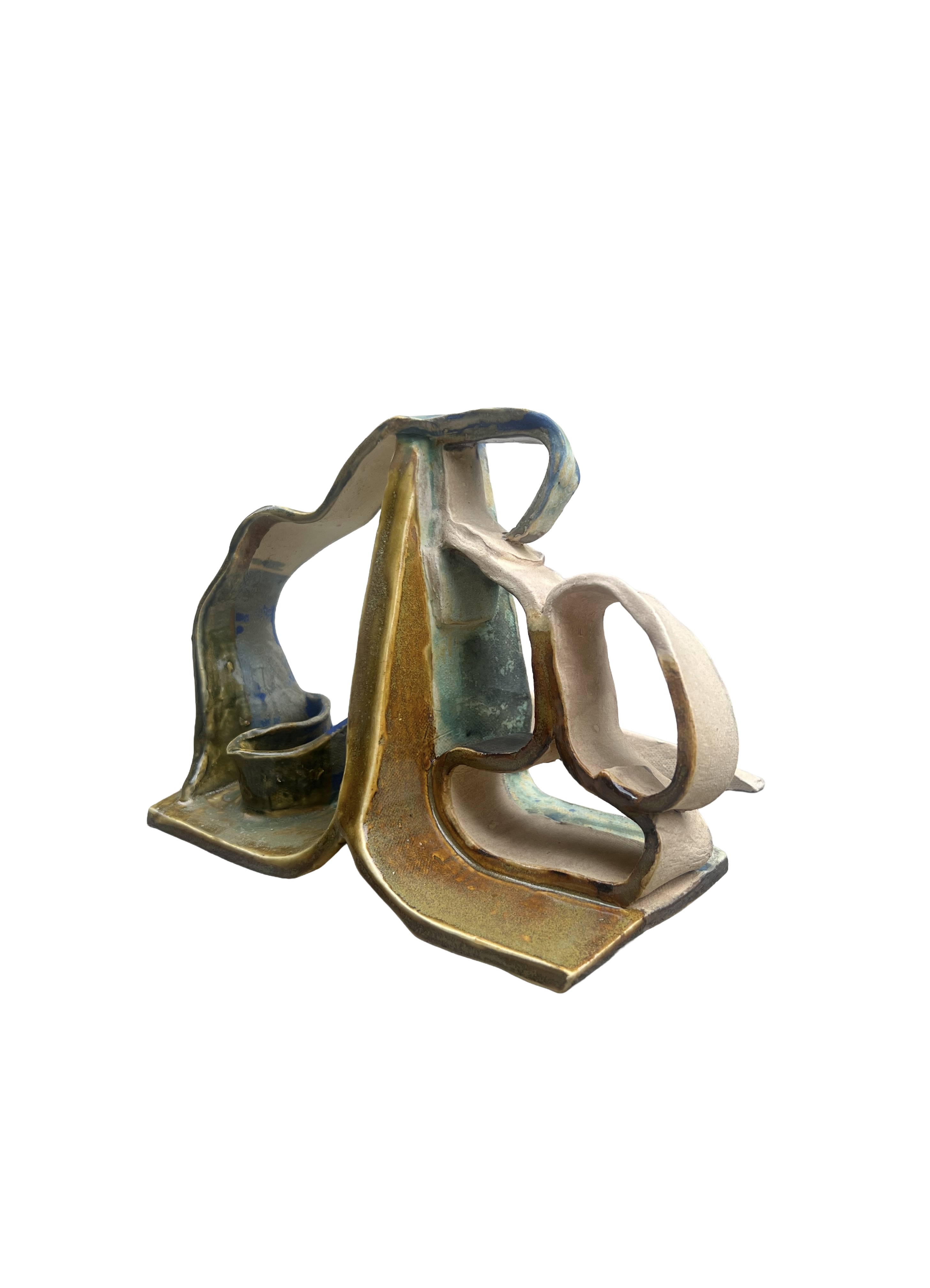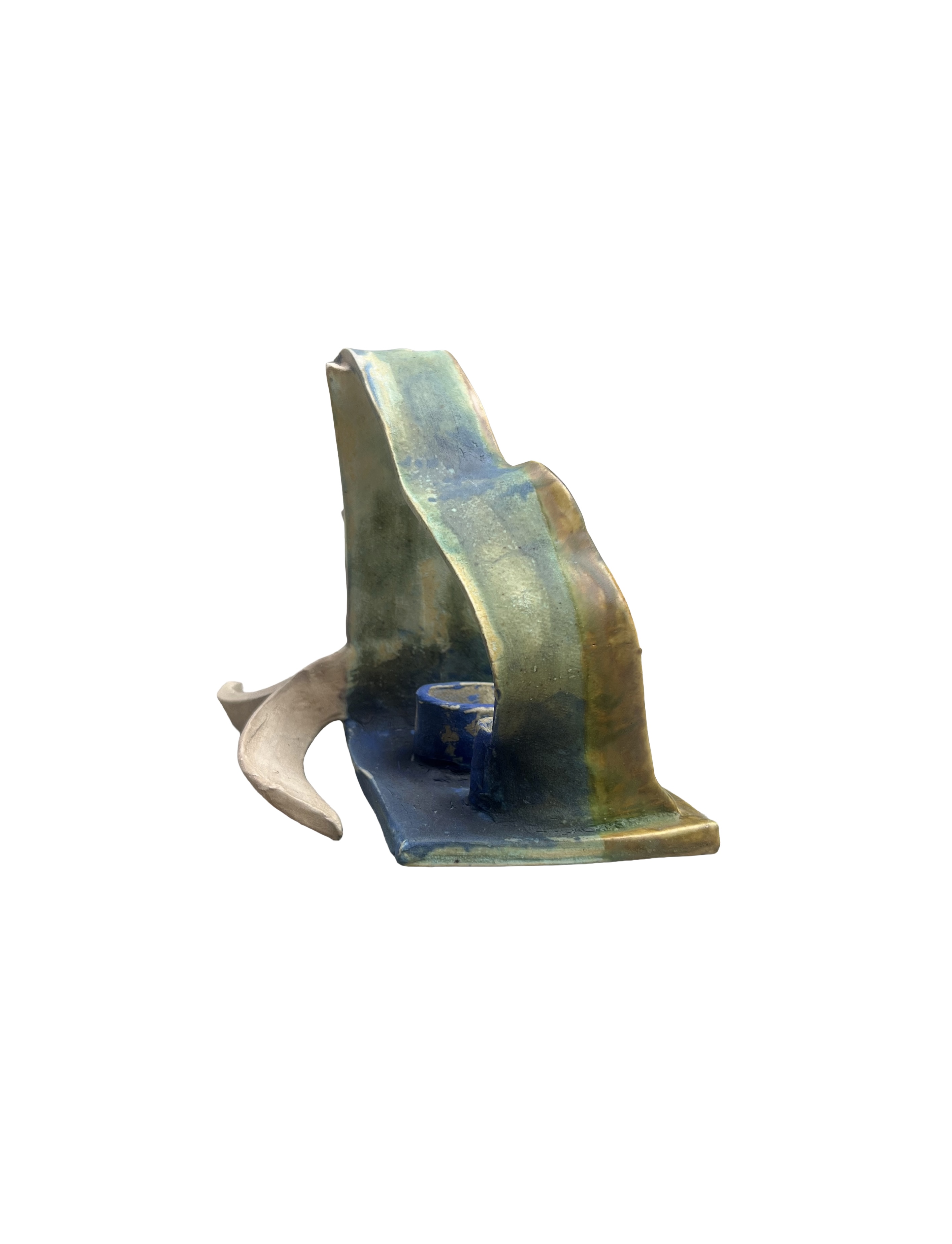 estimate. ceramic with glaze and underglaze. 8″ x 10″ x 7″. 2024