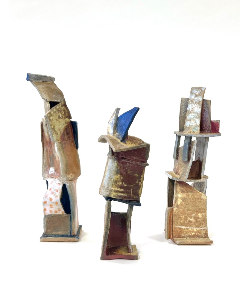 Small Stacks 1,2,3. woodfired ceramic with glaze and underglaze. ~7″ x 4″ x 4″. 2024