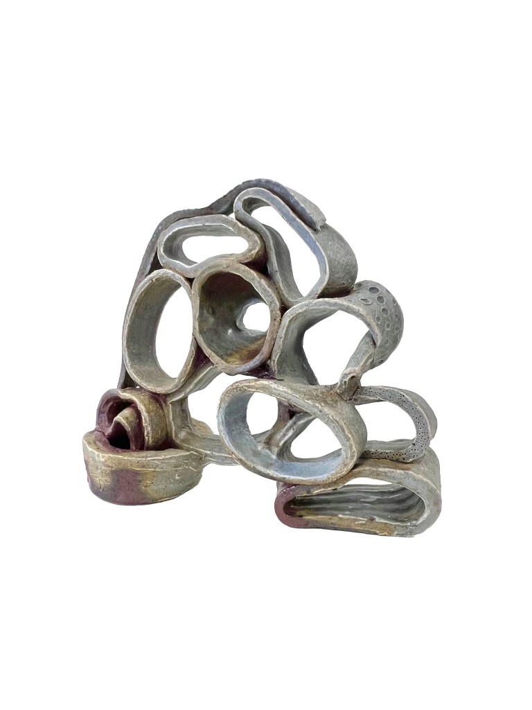 dimes. salt fired ceramic with slip and glaze. 13″ x 7″ x 3″. 2025