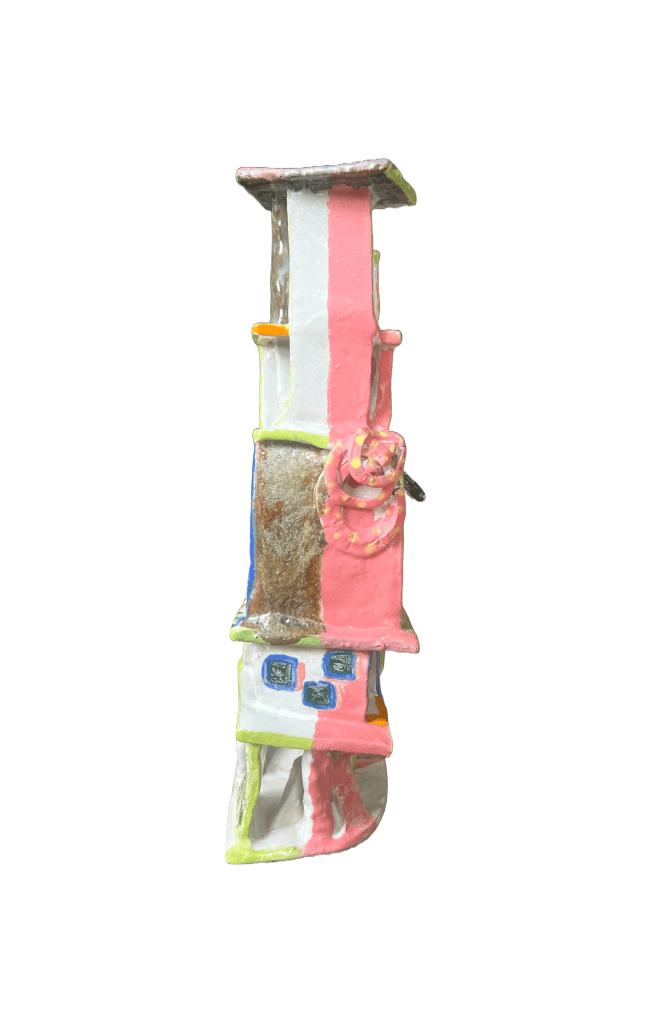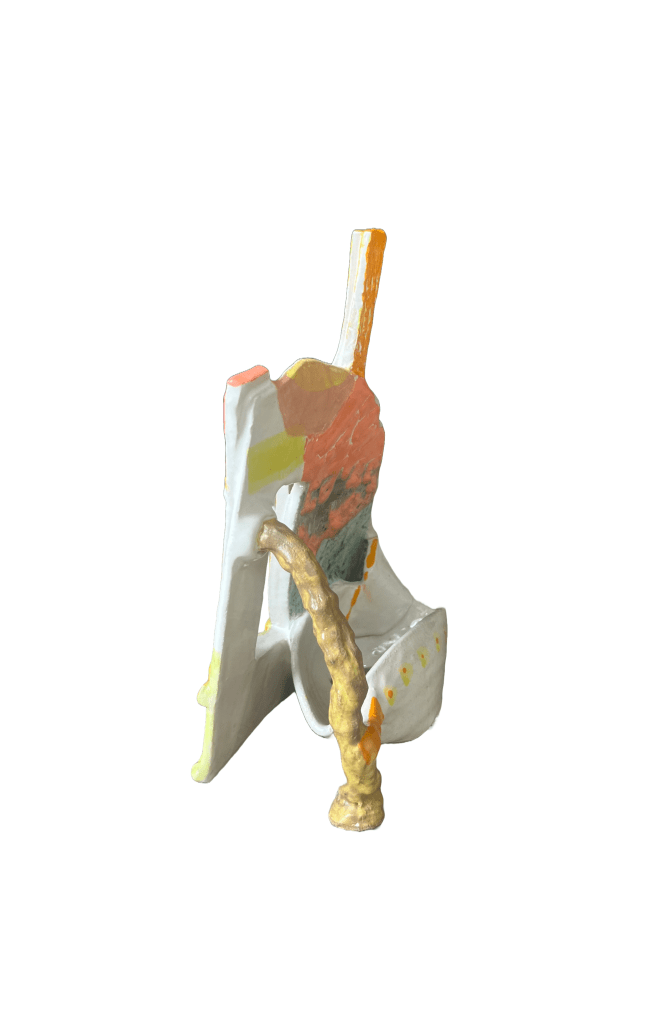 thrig. ceramic with glaze and oil paint. 14″ x 5″ x 7″. 2024
